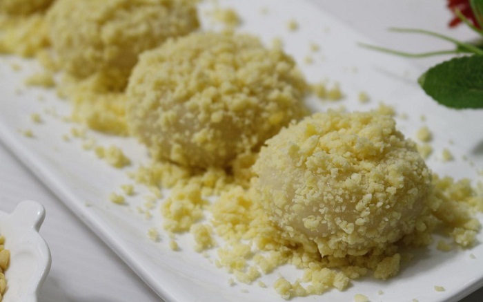 | Món bánh đặc sản Hưng Yên này được chế biến từ gạo nếp cái hoa vàng. |